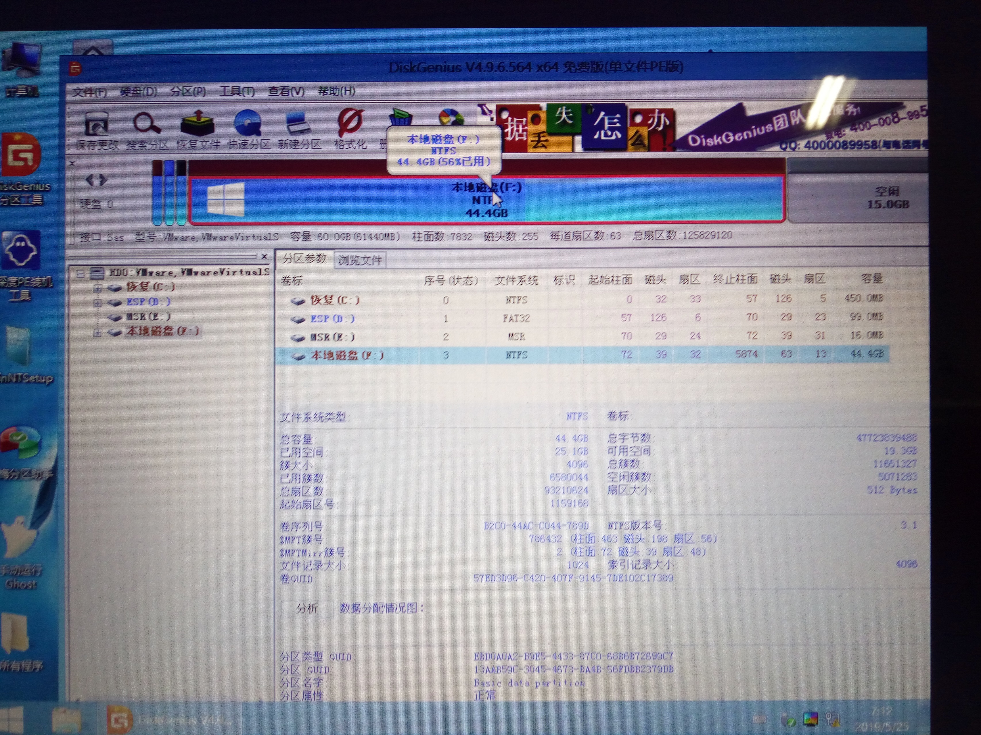 2、进入PE 系统后,启动diskgenius程序。