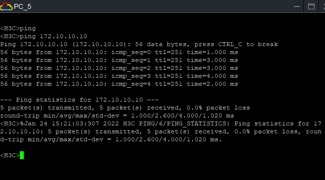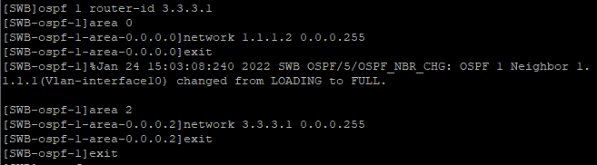 至此,H3C 多区域OSPF的配置步骤结束,实验成功。