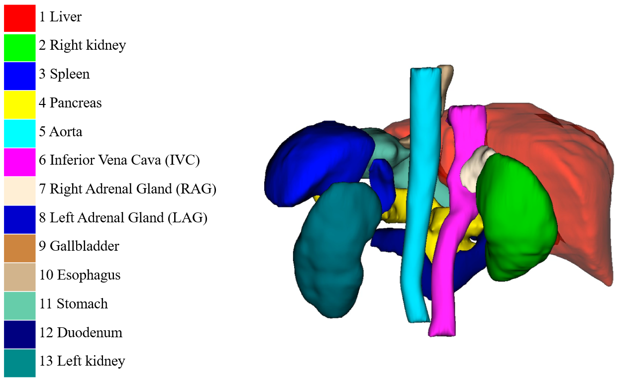 这个数据集包含 50 个腹部CT扫描,每个扫描件包含 13个器官的标注。