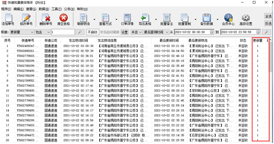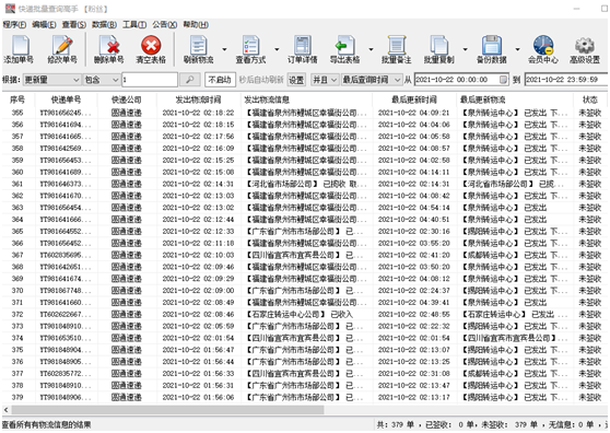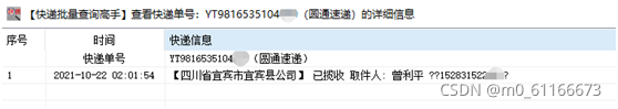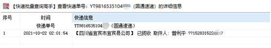 全部查询完成后,即可浏览一行一个单号物流信息