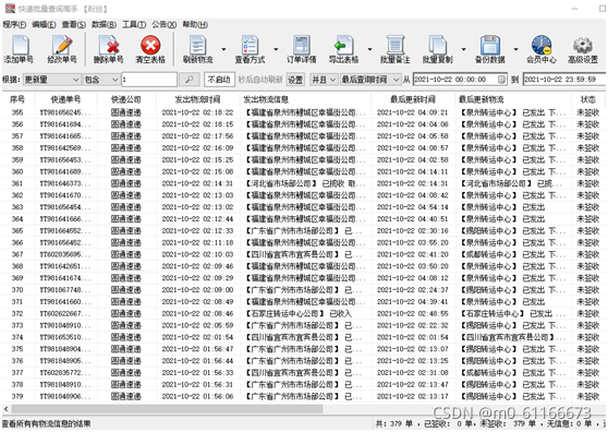 回到主界面上,进度条滚动,开始一一查询各个单号