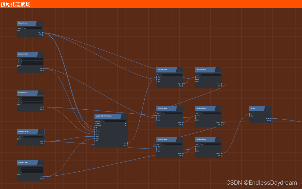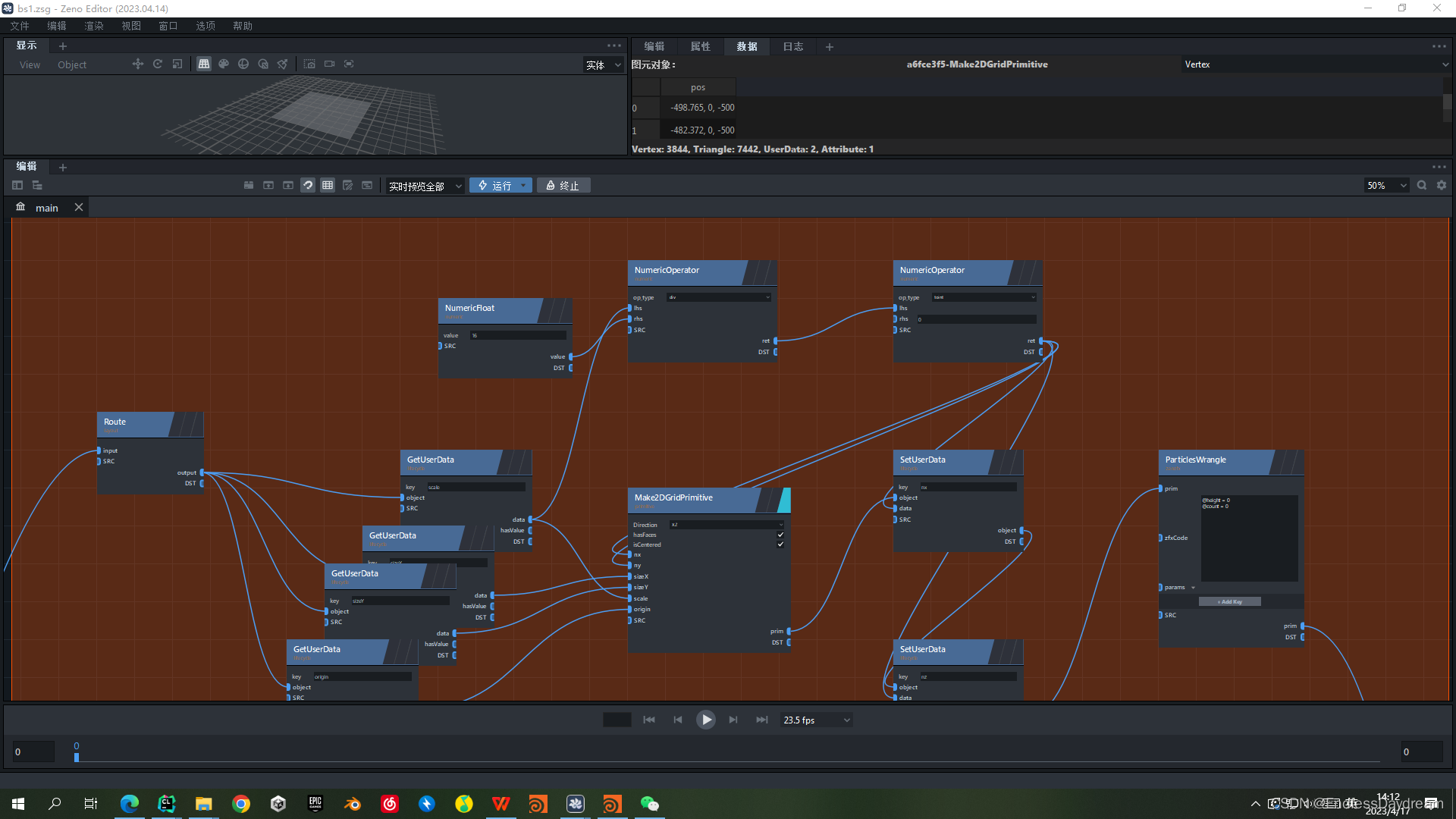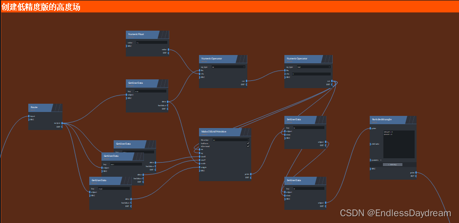 使用Make2DGridPrimitive节点来创建一个平面。