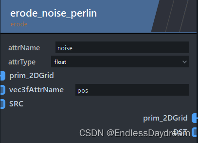 ZENDEFNODE(erode_noise_perlin,{ /* inputs: */ {"prim_2DGrid",{"string", "vec3fAttrName", "pos"},}, /* outputs: */ {"prim_2DGrid",}, /* params: */ {{"string", "attrName", "noise"},{"enum float float3", "attrType", "float"},}, /* category: */ {"erode",} });