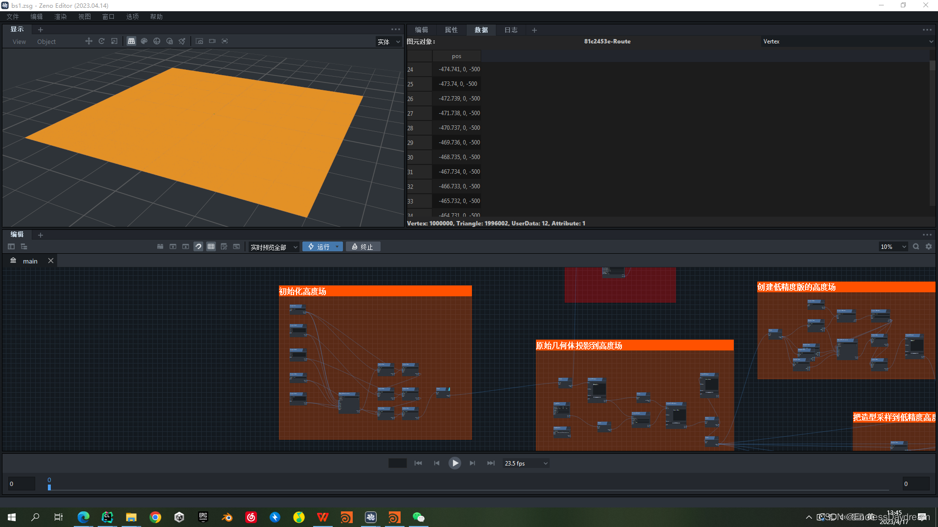 #pragma omp parallel forfor (int id_x = 0; id_x < nx; id_x++){int idx = Pos2Idx(id_x, id_z, nx);debris[idx] = _material[idx]; // 计算结果返回给外部数据if (visualEnable){float coef = min(1, (debris[idx] / 1.0));attr_color[idx] = (1 - coef) * attr_color[idx] + coef * vec3f(0.8, 0.6, 0.4);}}}terrain->verts.erase_attr("_material");terrain->verts.erase_attr("_temp_material");set_output("prim_2DGrid", std::move(terrain));}