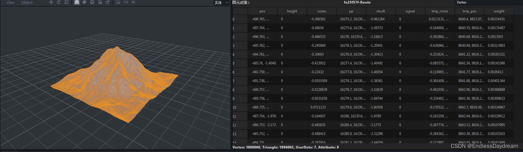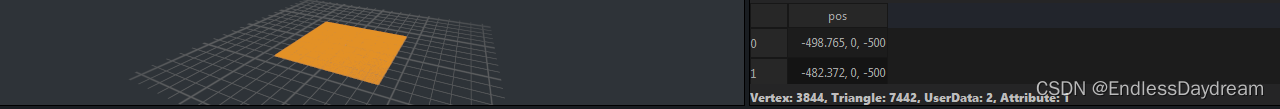 取出原始平面数据,重新布置平面顶点,这里将原始平面x轴和z轴上的点分别除以了16,得到由7442个三角面构成的平面。