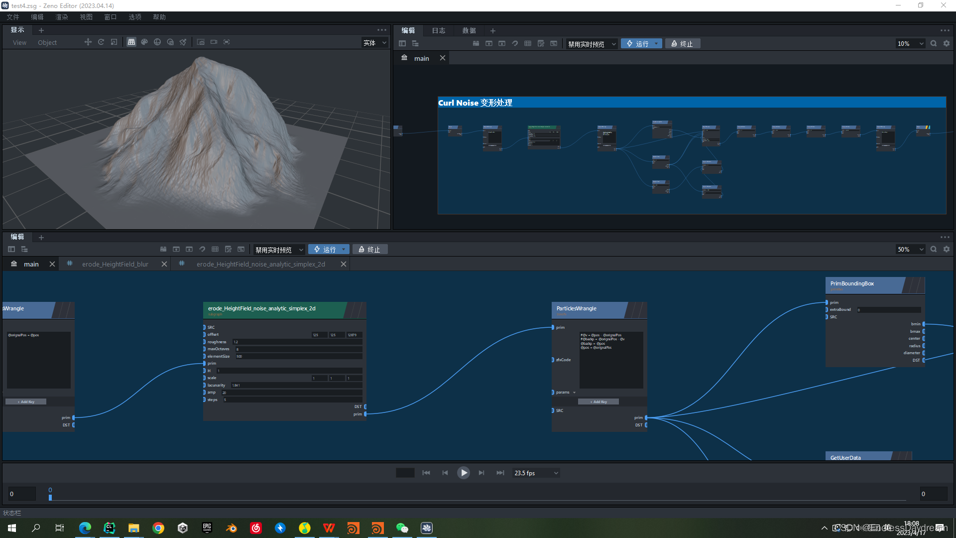 我们采用柏林噪声生成的Curl Noise (卷曲噪声)和Hybrid Noise 分别对山脉和平地进行变形。