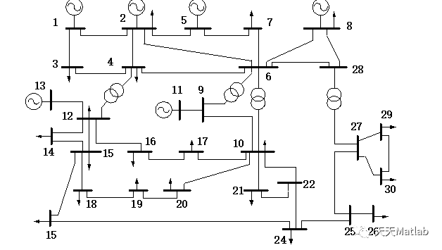 | 图1. IEEE-30节点测试系统接线 |
