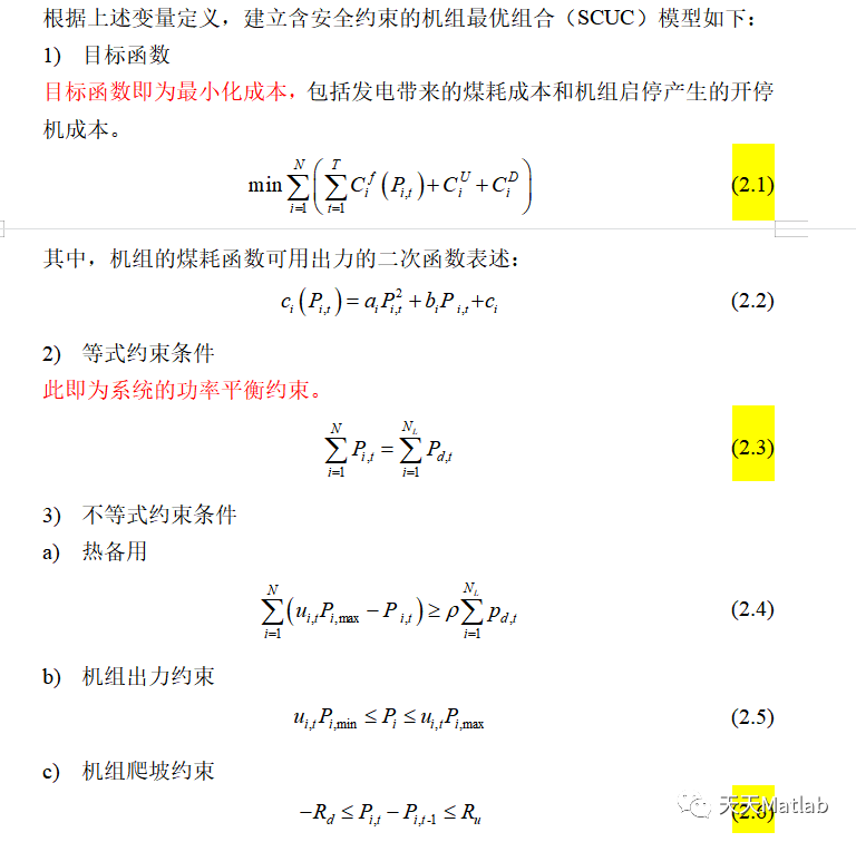 下文介绍机组组合优化的数学模型。