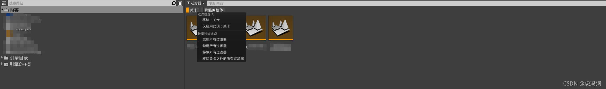 选择“关卡”过滤器,可以过滤出文件夹里面的所有关卡