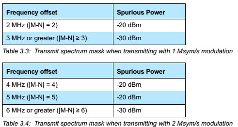 另外,蓝牙协议本身并没有对BLE设备的带外杂散(Out-of-band spurious emission)做规定,但是每个国家与地区都会有相关限制。