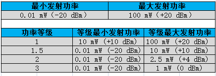 注意,以上表格中的“最小发射功率”及“等级最小发射功率”是指设备设置成最大发射功率状态下的最小发射功率。实际上各国的相关机构都会对无线设备的最大发射功率作出限制,不是每个国家都允许蓝牙设备的最大发射功率达20dBm。