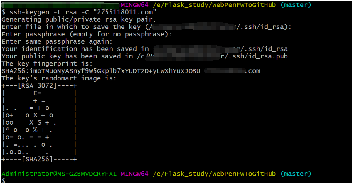 ssh-keygen -t rsa -C "You is email@qq.com" #-C参数后面填写GitHub的邮箱地址
