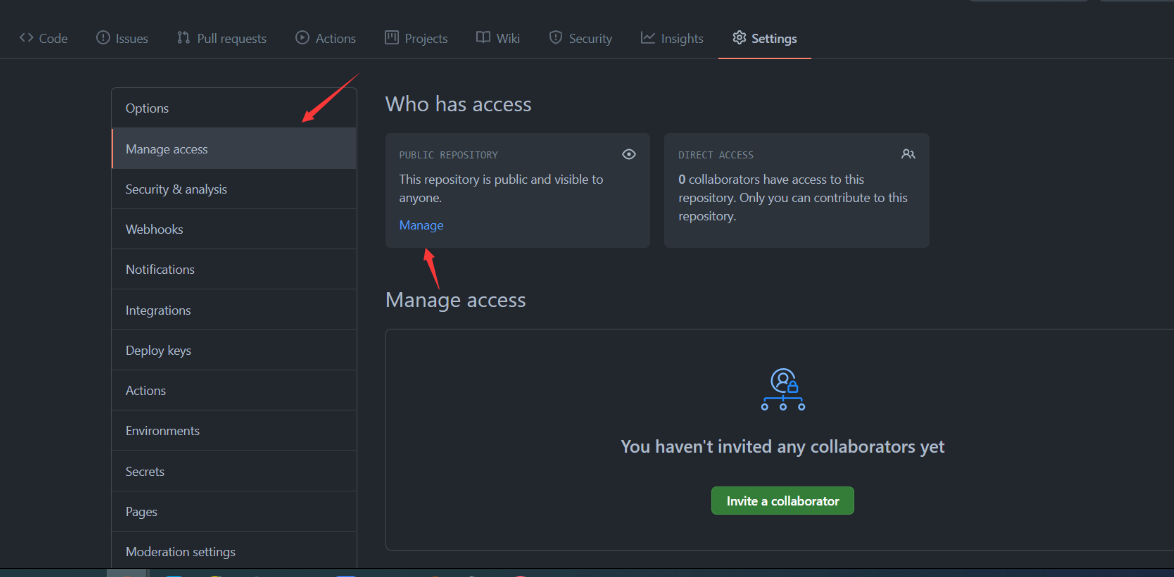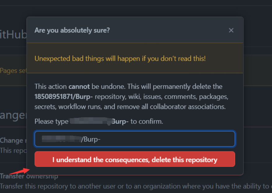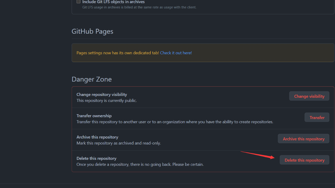 3、进入管理页面、拉到底部,选择删除掉仓库
