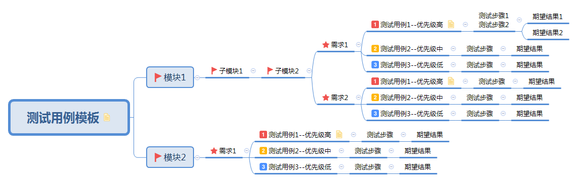 3、数字图标表示用例和用例优先级(1:高 2:中 3:低)