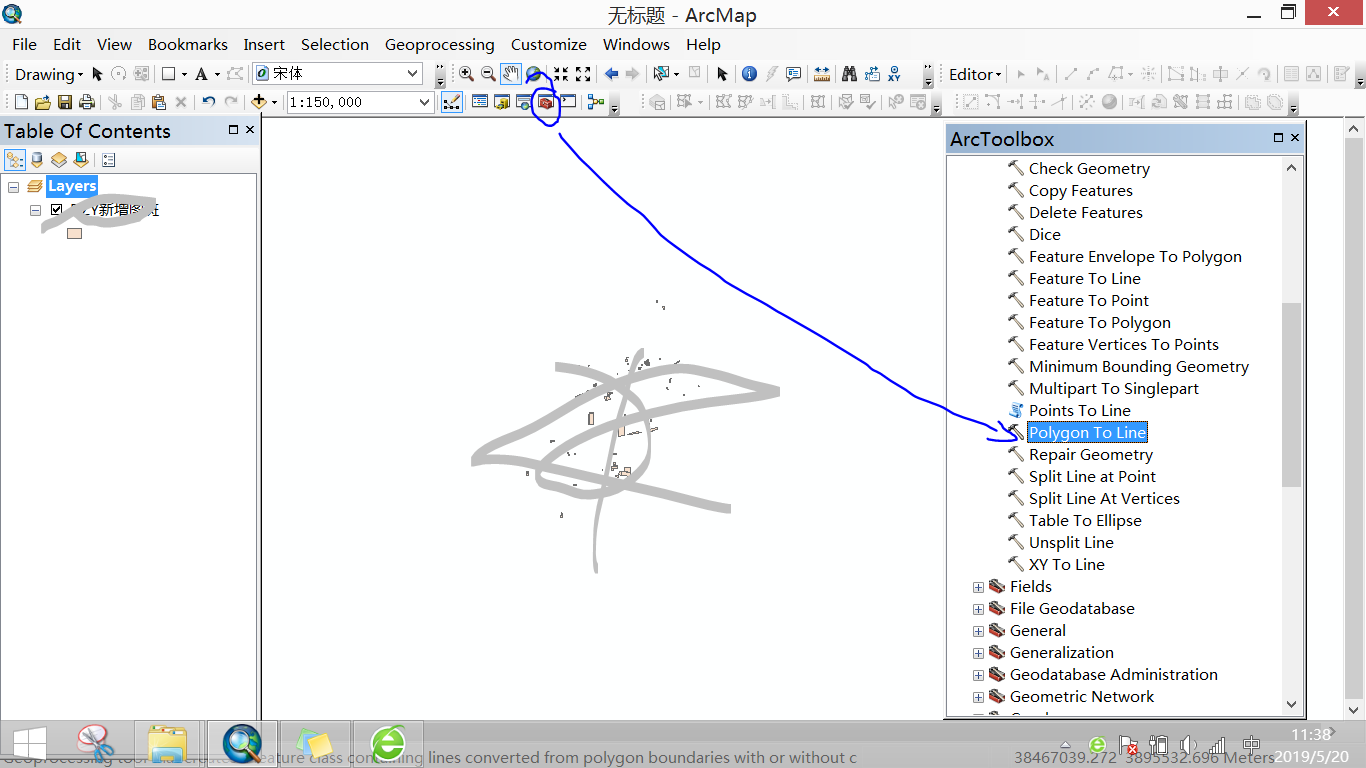 1.在arcgis中将面转为线