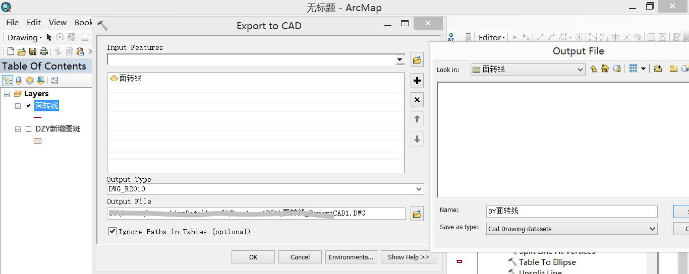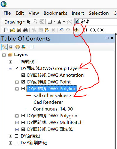 (7)将刚才炸开的DWG格式的文件添加到Arcmap中