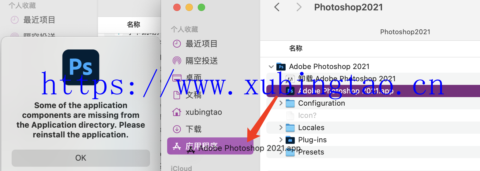 直接将应用拖到应用程序目录,但PS启动会报错而用不了,而且这种方式是将应用拷贝到系统宗卷的,这违背了减少系统盘空间消耗的目的,所以这种方式不是我想要的,当然其他应用这种方式应该是可以正常启动的。