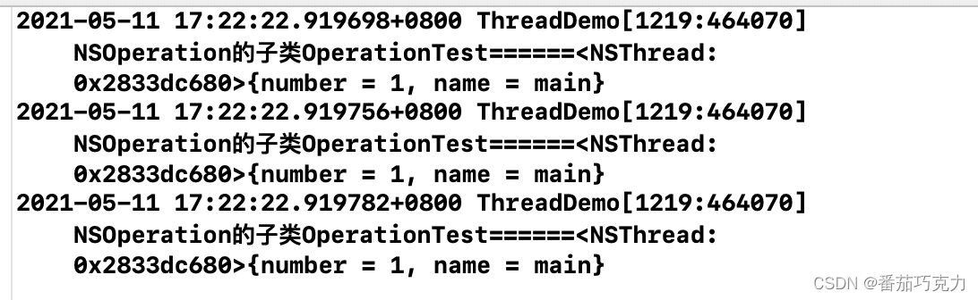 }- (void)task1{for (int i=0;i<3;i++) {NSLog(@"NSInvocationOperation---%@",[NSThread currentThread]);}