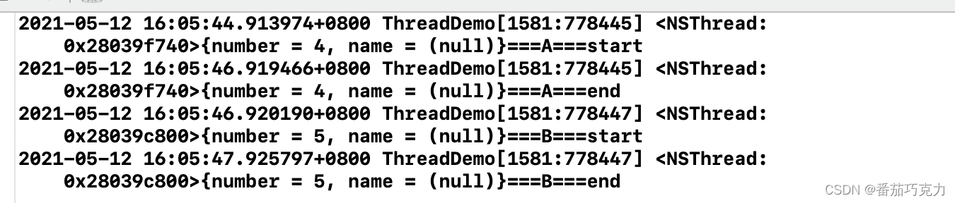 NSConditionLock *lock = [[NSConditionLock alloc] initWithCondition:1]; // 初始化,设置condition=1NSOperationQueue *queue = [[NSOperationQueue alloc] init];[queue addOperationWithBlock:^{[lock lockWhenCondition:1]; // 当condition=1时 获取锁成功 否则等待(但是首次使用lockWhenCondition时condition不对时也能获取锁成功)NSLog(@"%@===A===start",[NSThread currentThread]);sleep(2);NSLog(@"%@===A===end",[NSThread currentThread]);// unlock根据不同的条件 控制对应的线程[lock unlockWithCondition:2]; // 解锁,同时设置condition=2并signal;