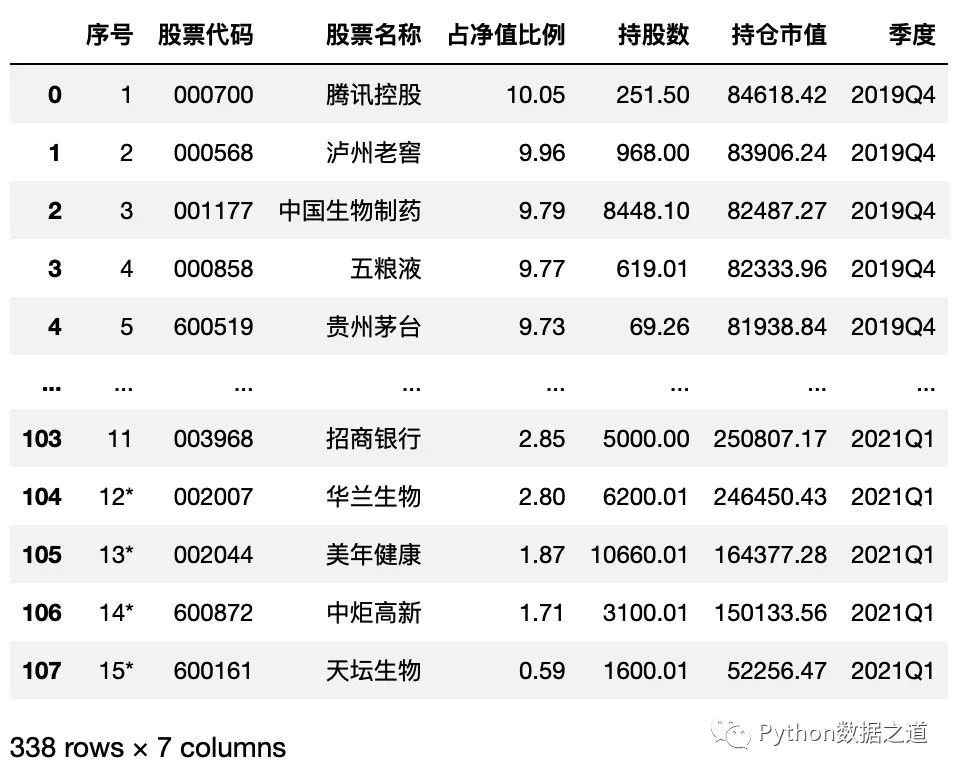 for code in codes:df_tmp = fund_stock_holding(years,code)df = df.append(df_tmp)