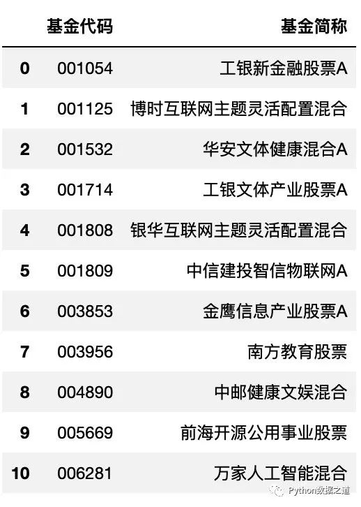 上面数据中,显示的是基金代码,一般情况下,咱们还是习惯看基金名称,因此可以把基金代码换成基金名称。