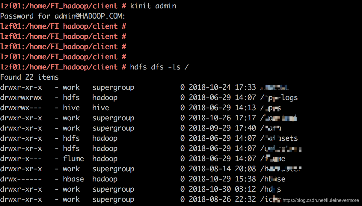 需要注意的是,如果集群开启了kerberos安全,需要先进行用户认证,如下图所示: