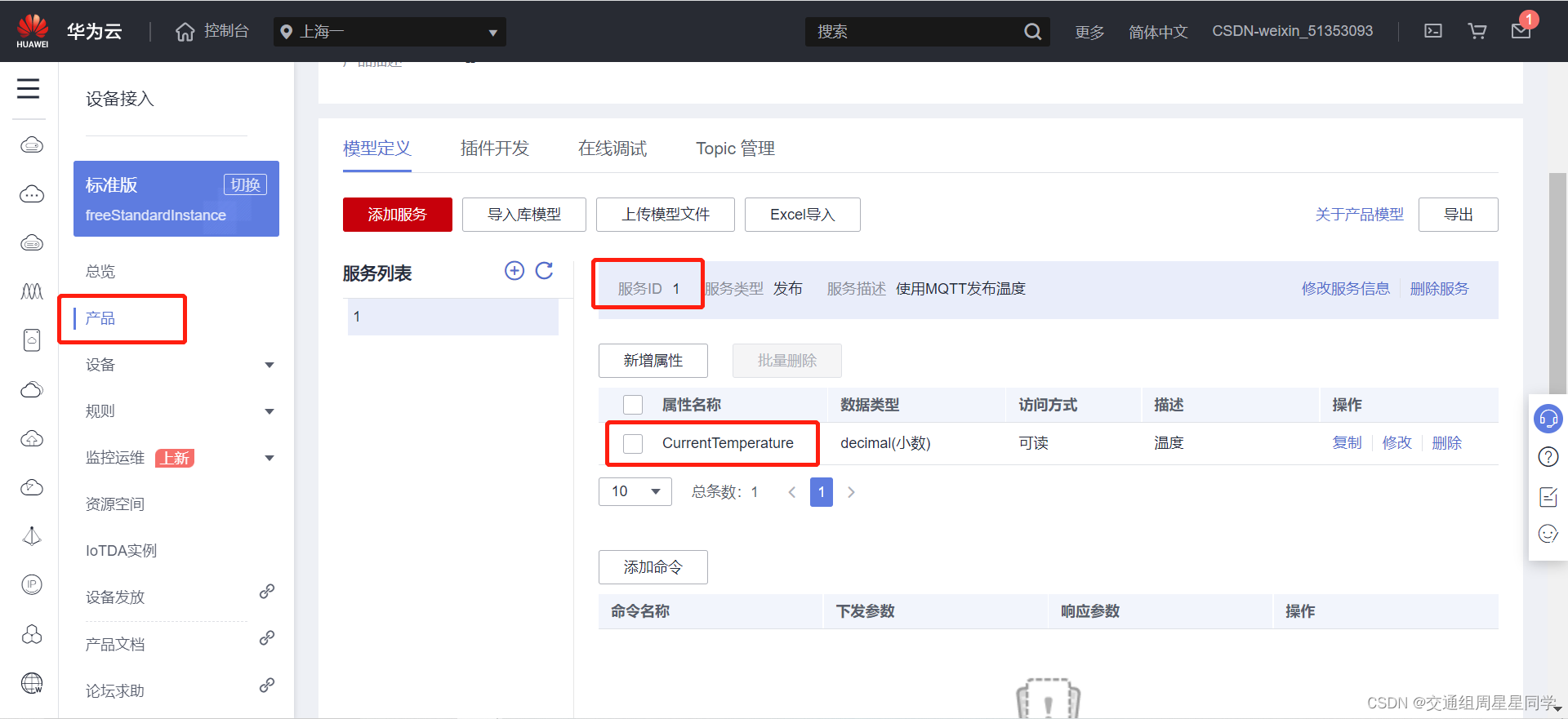 属性名称是和服务id是我们创建产品功能时给产品添加的,按照下面的查找一下