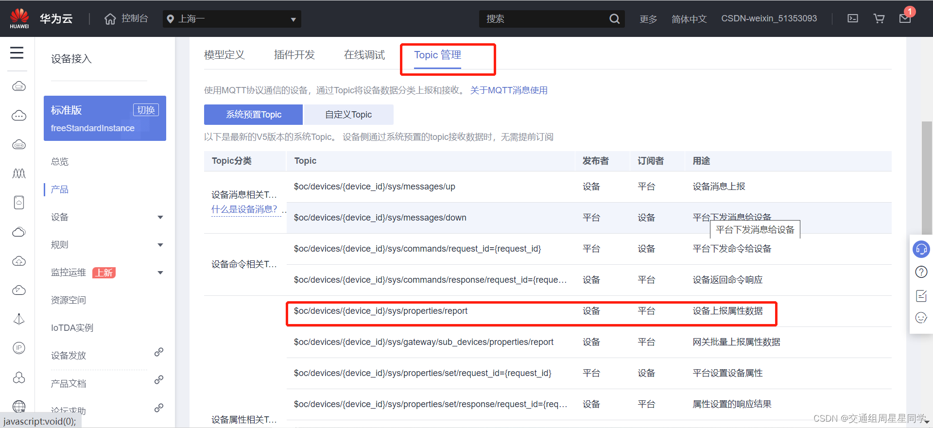 华为云设备属性上报的官方文档链接:https://support.huaweicloud.com/api-iothub/iot_06_v5_3010.html