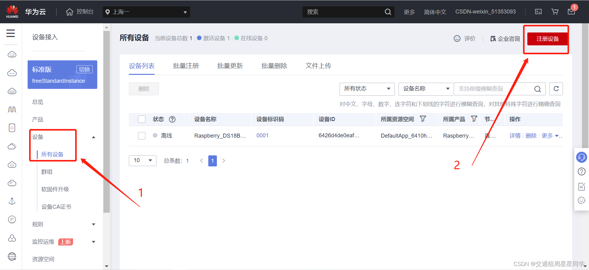 1、点击“设备”中的“所有设备”,点击“注册设备”