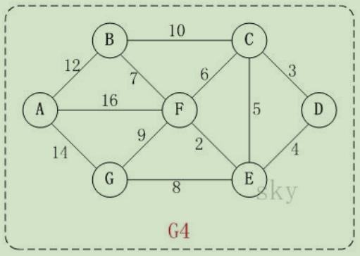 以上图 G4 为例,来对克鲁斯卡尔进行演示(假设,用数组 R 保存最小生成树结果)。