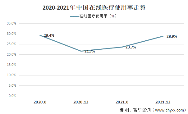 与此同时,国家主管部门出台相关政策对在线医疗行业进行进一步规范。在线医疗行业持续保持高速发展,更多互联网企业加入竞争。截至2021年12月,我国在线医疗使用率为28.9%,较2020年12月提升7.2个百分点。