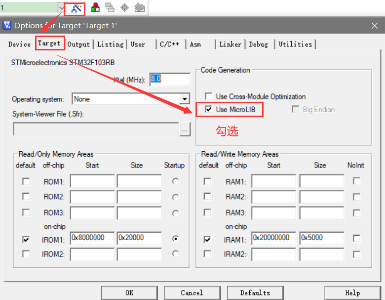 在使用printf函数之前需要先勾选微库