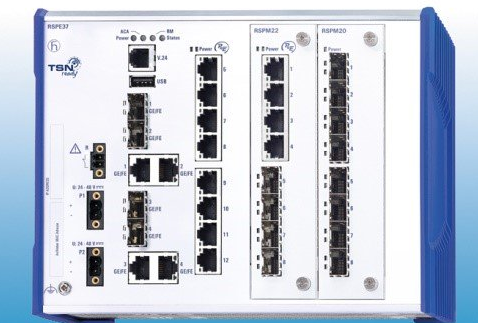 根据Belden的说法,RSPE产品系列的管理型交换机包括一个带有八个双绞线和四个组合端口的基本单元,可以通过各种媒体模块进行扩展。RSPE35和RSPE37版本支持符合IEEE 1588-2008的精确时间协议(PTP),并具有现场可编程门阵列(FPGA)模块,这意味着可以实现基于硬件的选择性冗余机制,如高可用性无缝冗余(HSR),并行冗余协议(PRP)。新的软件更新(也支持TSN)现在可以加载到FPGA中,作为以前冗余机制的替代方案。