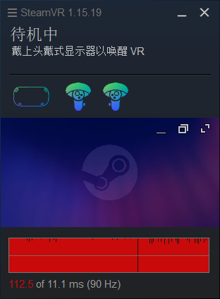 运行成功后SteamVR上的头显和手柄控制器图标会被点亮,