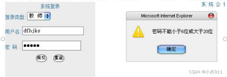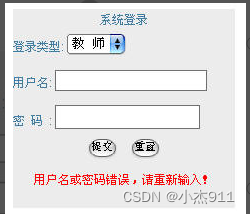 当然系统也提供对合法用户在输入错误的信息时做出响应的友好的报错信息, 相应的错误信息图见图2-4: