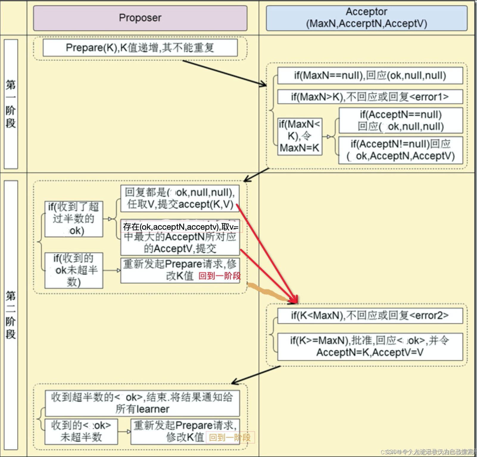 结合proposer和acceptor的行为,我们将把算法可以分为两个阶段来执行。