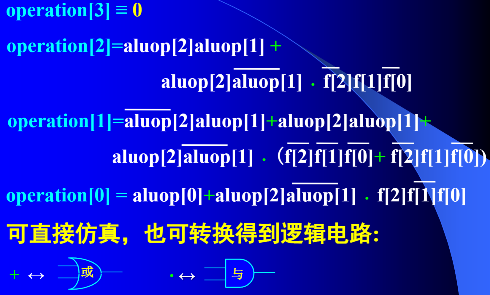 根据ALU的真值表,逐位设计operation[3:0]码位有效(为1)时产生逻辑: