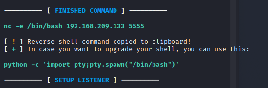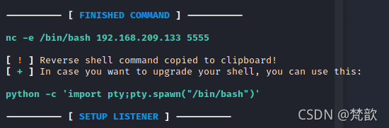 命令执行页面,使用revshellgen.py脚本选择反弹shell语句: