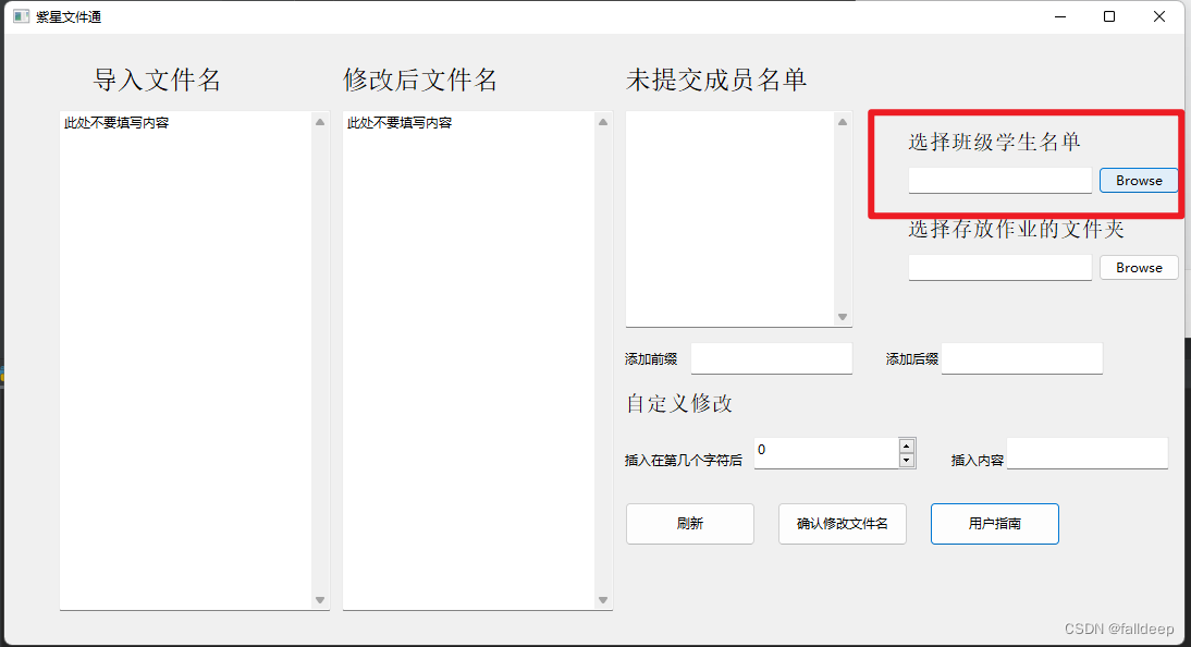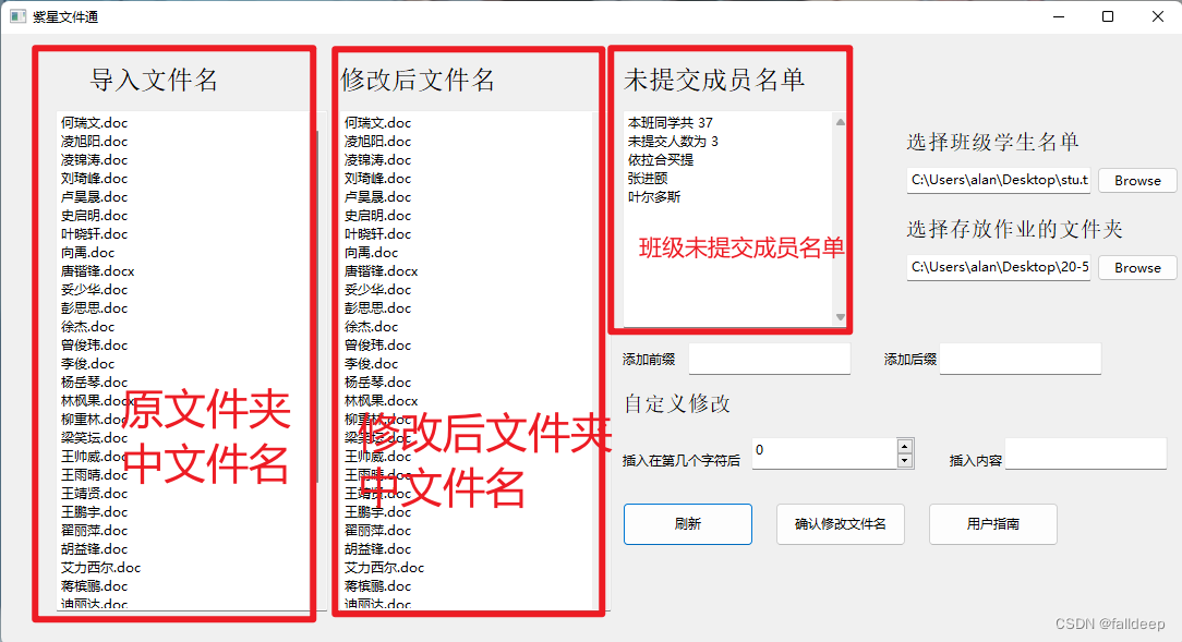 作为一个卑微的学委,总是因为收作业的事焦头烂额,又是要查人又是收集到的文件杂乱无章,因此我和小伙伴们现在开发了这个软件专门用作文件的重命名和查人