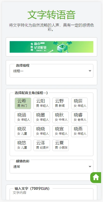 记灵在线工具是一款免费的在线文字转语音工具。它可以将任何文本转换成自然流畅的语音。该工具支持多种配音,包括云希、云阳、晓晓等等,而且操作非常简单,下面是具体操作步骤。