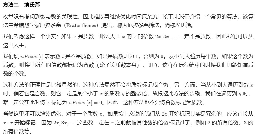 而最近比较大的收获就是下面这个判断质数和计算质数个数的算法,这个算法的详细介绍来自leetcode题解。