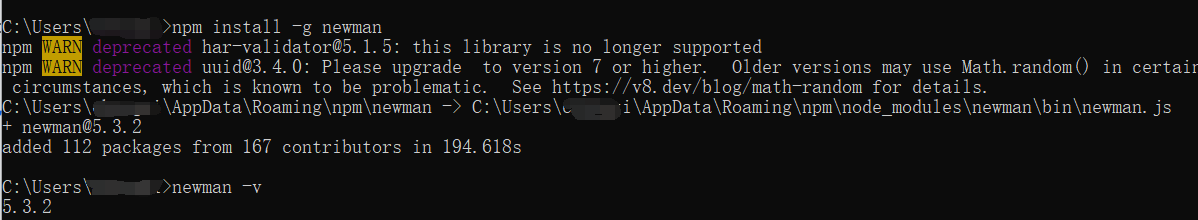 2. 安装newman (前提:确保 npm -v 验证通过)