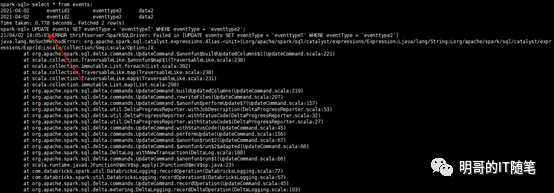所以接下来笔者经过了各种折腾,尝试了不同的ddl和dml语句 (使用hive 的 storedas 语法格式,使用spark 的using 语法格式,尝试建不同字段名不同字段类型的delta 表,尝试不同的insert 和 update 语句等), 也尝试了不同的 scala update api, 折腾了一天多,都没有解决。