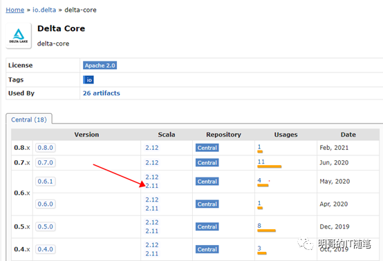 注意:delta lake 和spark各版本,跟scala的版本匹配关系如下: