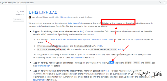 一次Delta lake 0.8.0 踩坑有感:使用新框架的新版本,一定要尽早关注多多关注社区动态...