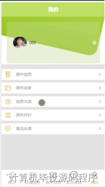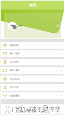 用户,在我的页面可以对快递信息,取件记录,计件信息,寄件进度,信息交流,寄件评价,意见反馈等详细信息进行操作,如图5-6所示。