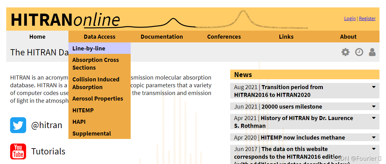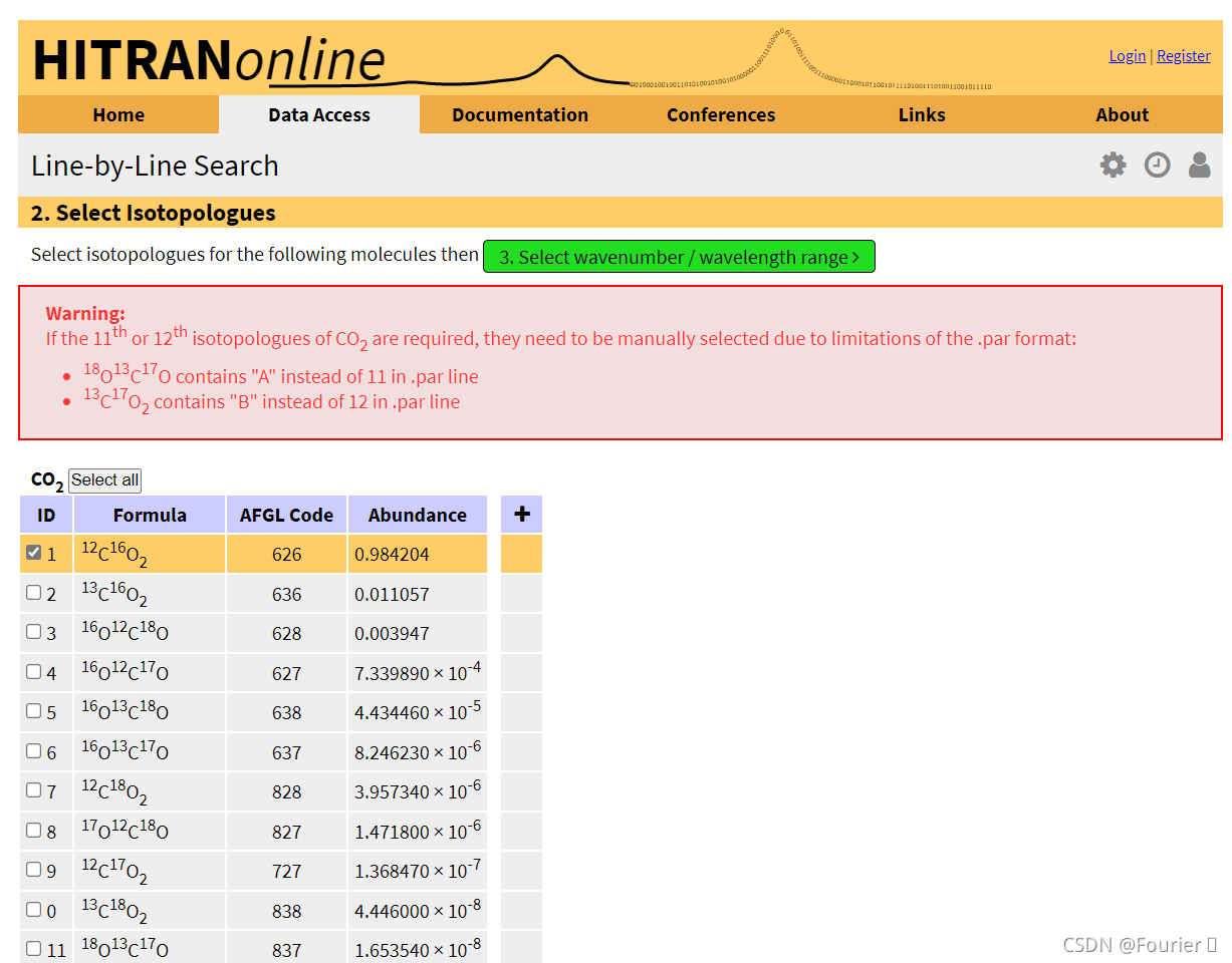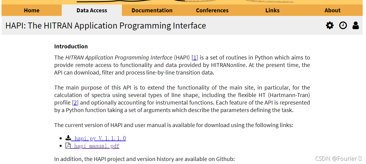 HITRAN数据库的获取方法有两种,第一种方法是直接从官网(https://hitran.org/)上下载,第二个方法是利用HAPI接口远程访问HITRAN online下载所需数据。HAPI不仅可以从网站上下载数据,还可以直接计算气体的光谱特性。