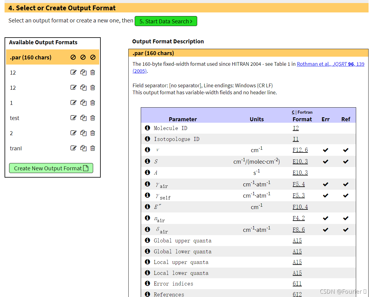 5. 输出项设置,计算光谱吸收系数一般需要的参数有:波数,谱线强度S,空气增宽半宽