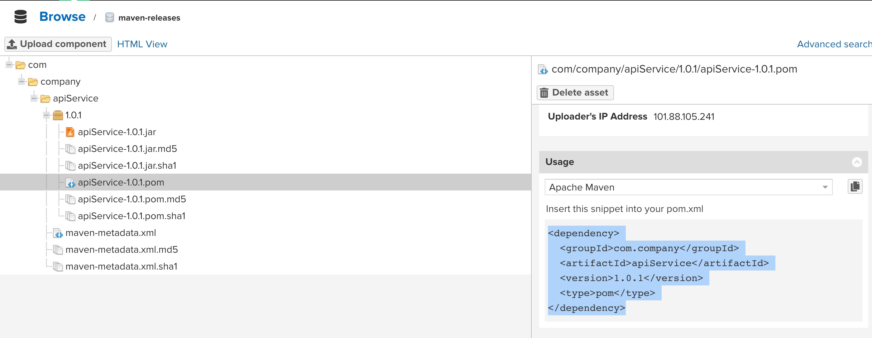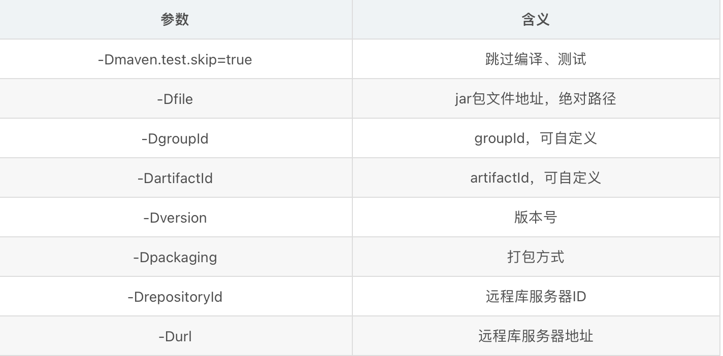 mvn deploy:deploy-file -DgroupId=com.company -DartifactId=apiService -Dversion=1.0.1 -Dpackaging=jar -Dfile=apiService.jar -Durl=http://121.4.253.22:8081/repository/maven-releases/ -DrepositoryId=releases
