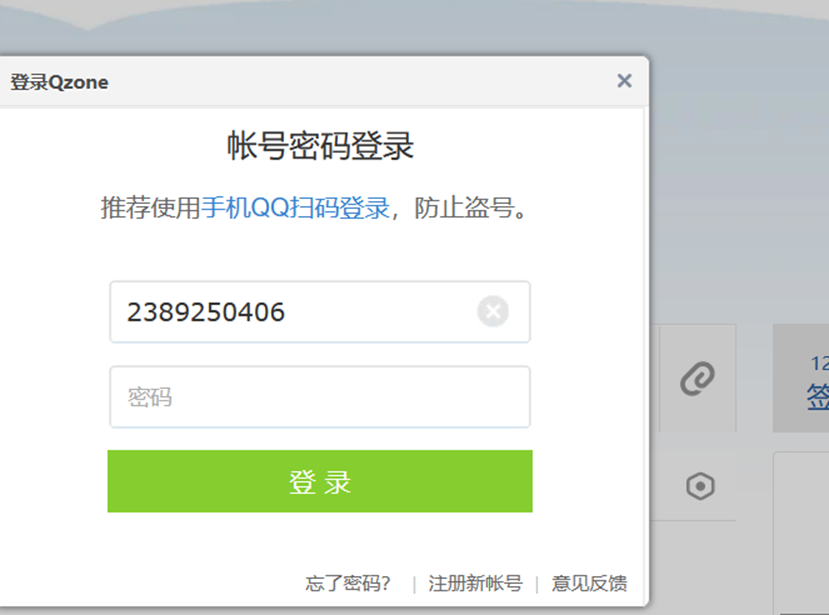 由于个人用QQ空间,密码有点复杂,搞不出来